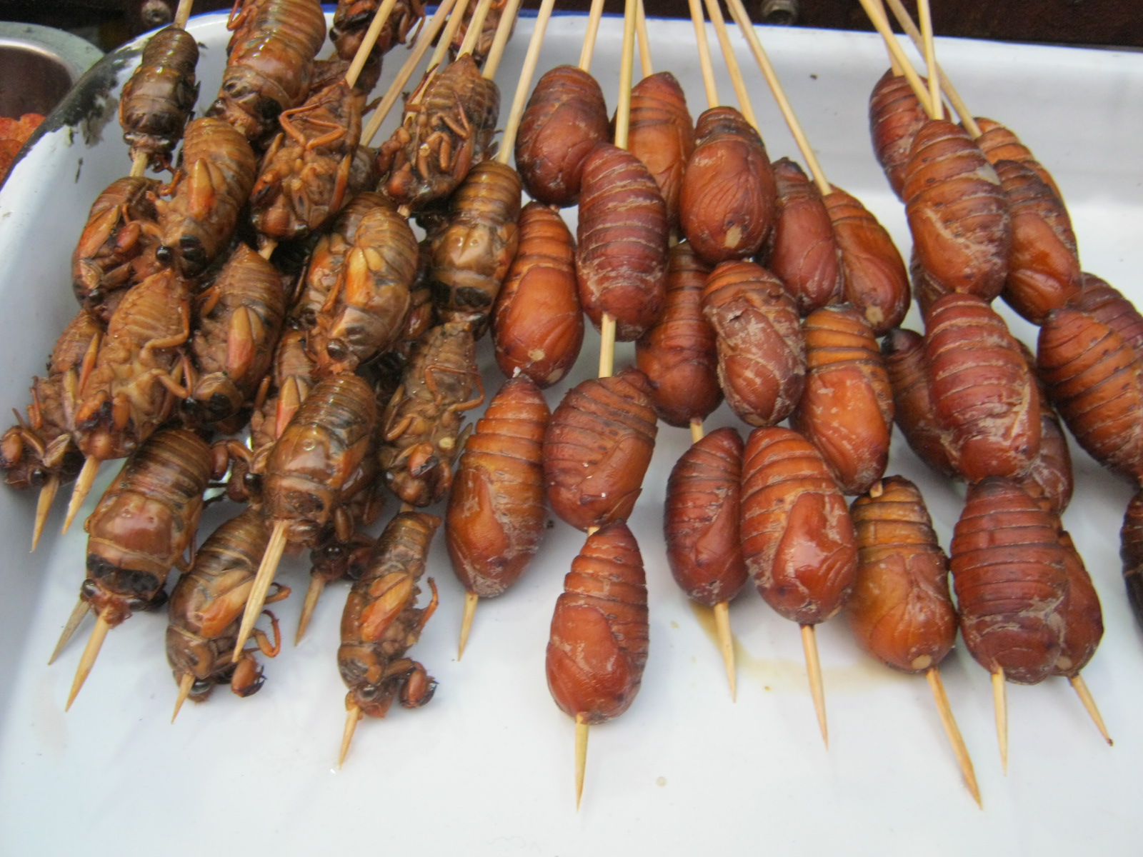 Nach meiner Ankunft im Hotel in Wan Chai auf Hong Kong mache ich mich wie immer auf den Weg durch die sehr interessanten Straßen und – noch viel besser – Gassen der Insel. Bei jedem Trip entdecke ich etwas Neues. Da ist beispielsweise die unendliche Vielfalt an Essbarem. Das beginnt beim Huhn, das vor deinen Augen geschlachtet, zerlegt und verkauft wird. Das geht weiter mit exzellenter Pekingente, den unterschiedlichsten „Meeresfrüchten“ wie zum Beispiel Tintenfischen in allen Größen, Schrimps, Seegurken usw. Diese „Leckereien“ sind meist am Spies gebraten. Natürlich kann man auch gebratene Seidenwürmer (Larven) essen. Die sind nicht aus Seide, sondern das sind die, die die Seide herstellen – bevor sie gegessen werden.
